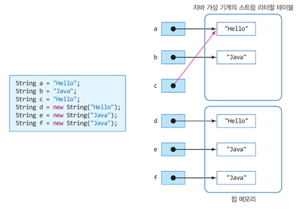 하지만 new String()의 경우 new를 이용하여 생성되는 다른 객체와 동일하게 힙 메모리에 생성됩니다.